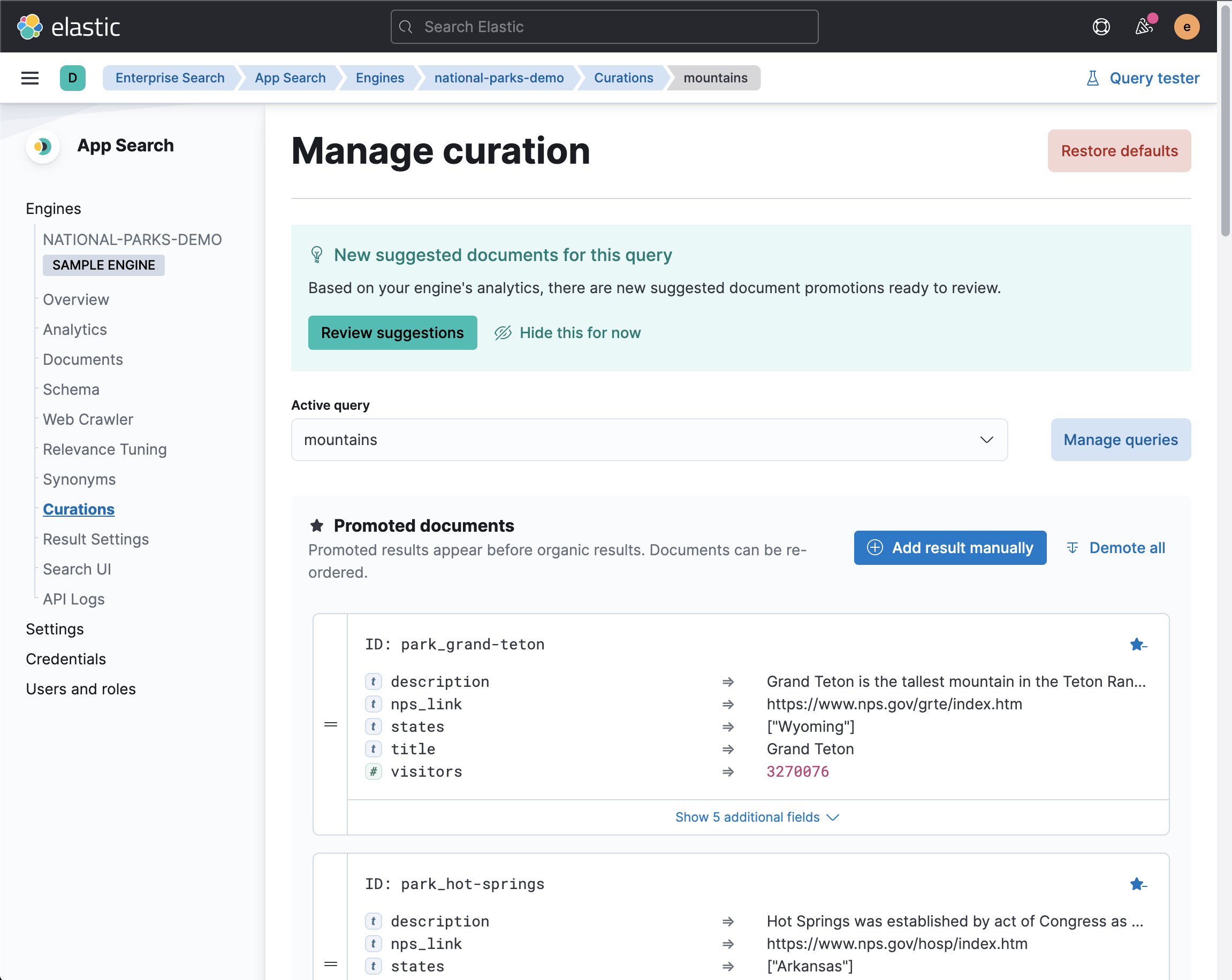 SuggestedCurationsCallout, included on our Engine and Analytics pagesSuggestedDocumentsCallout, included on our Curation Detail page for manual curationsThese are powered by an underlying