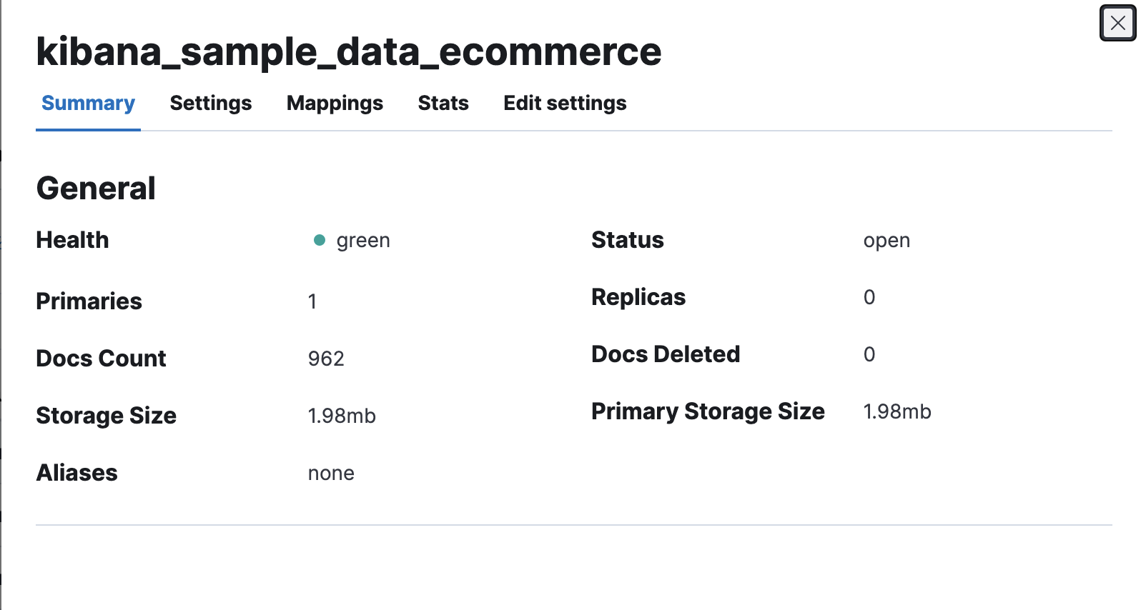 In Index Management app, index details again display previously missing values for the number of deleted documents and the primary storage size.