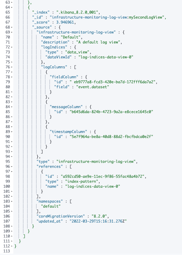 infrastructure-monitoring-log-viewsaved object type is an extracted sub-set of the log-specific properties from the old sharedinfrastructure-ui-sourcesaved object type. Simulaneously, theindex_patternlog index reference type has been renamed todata_view.New