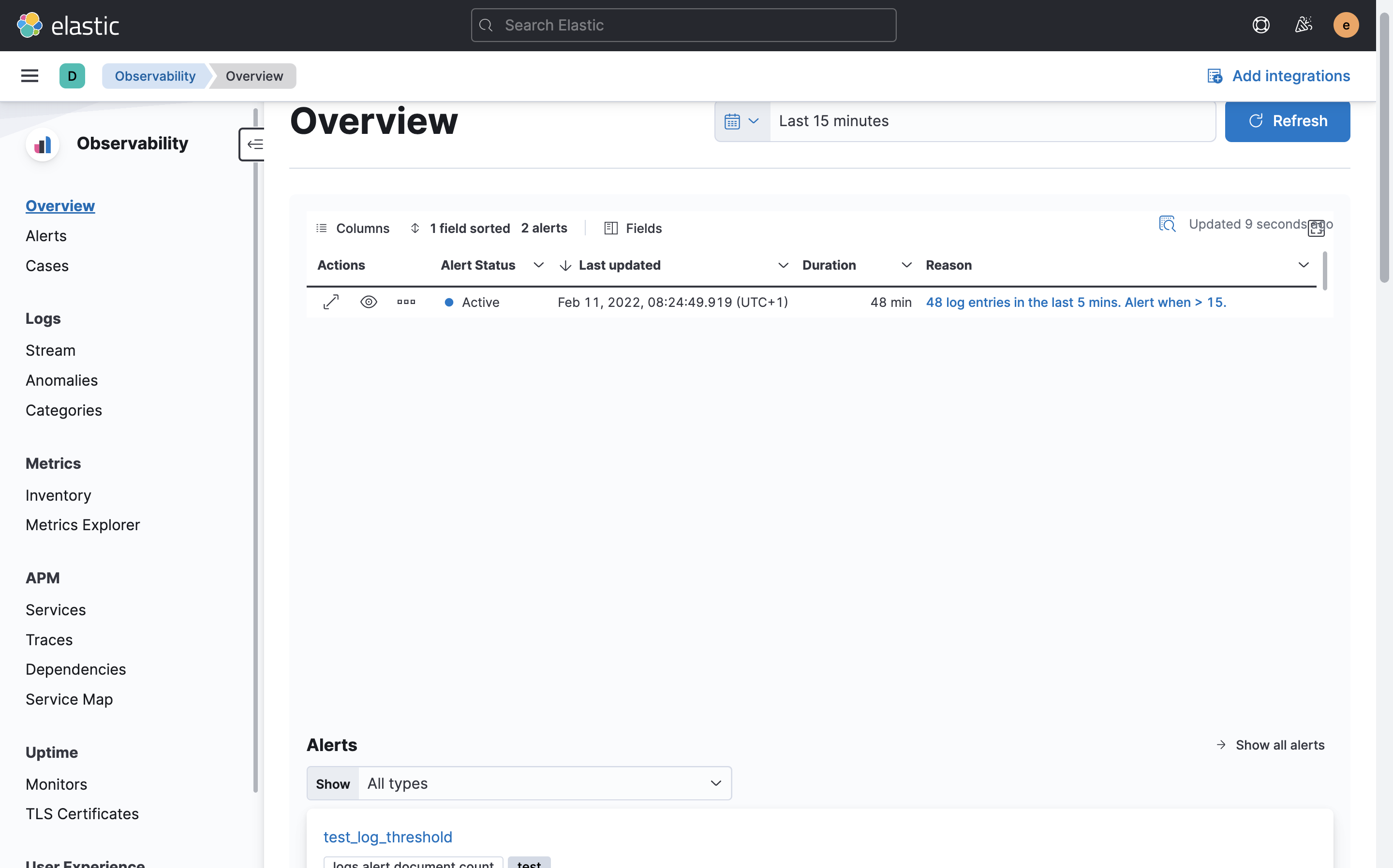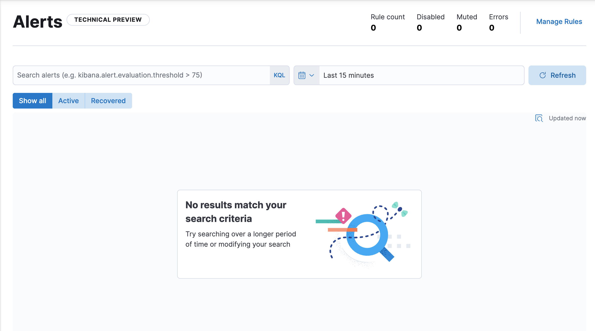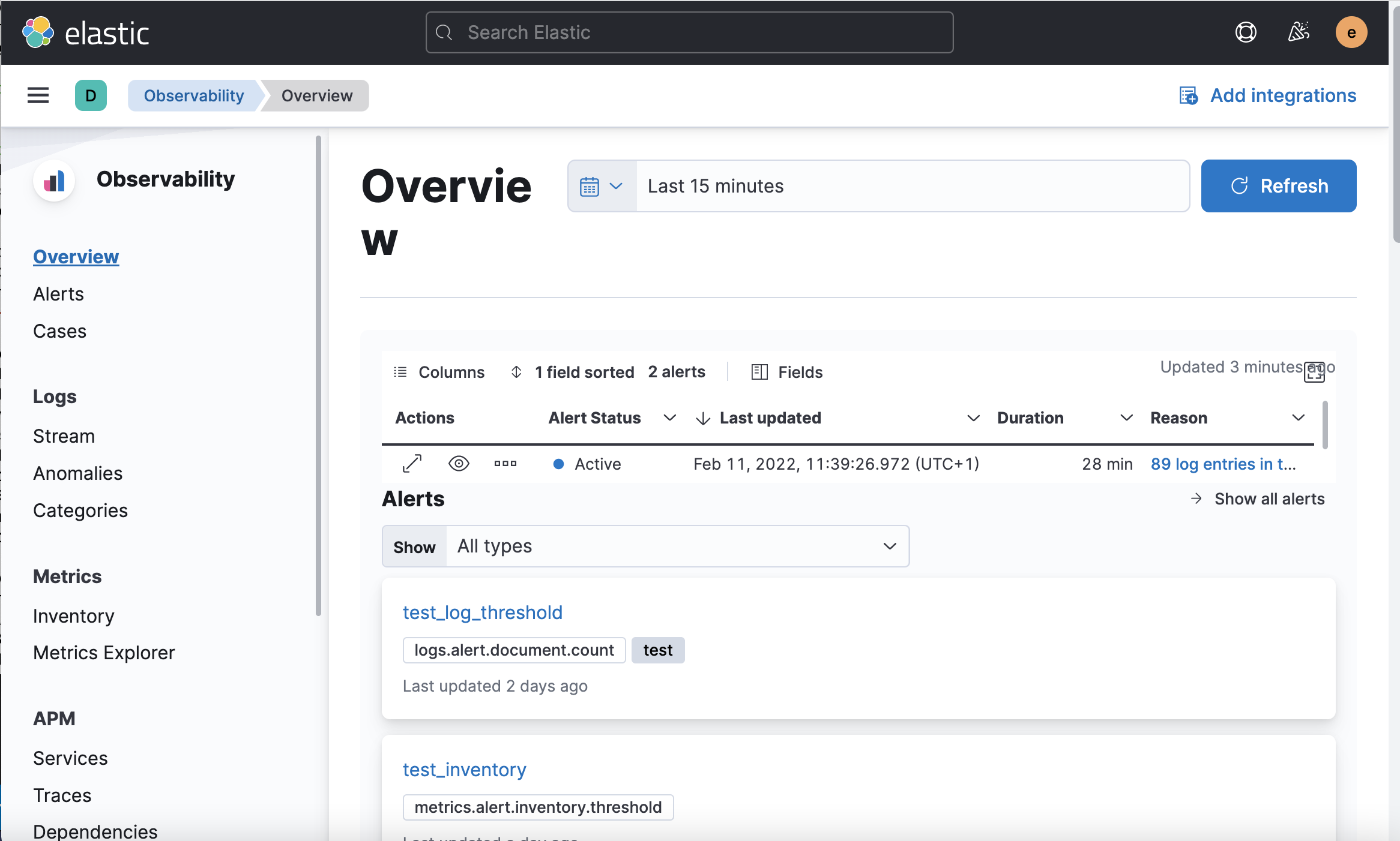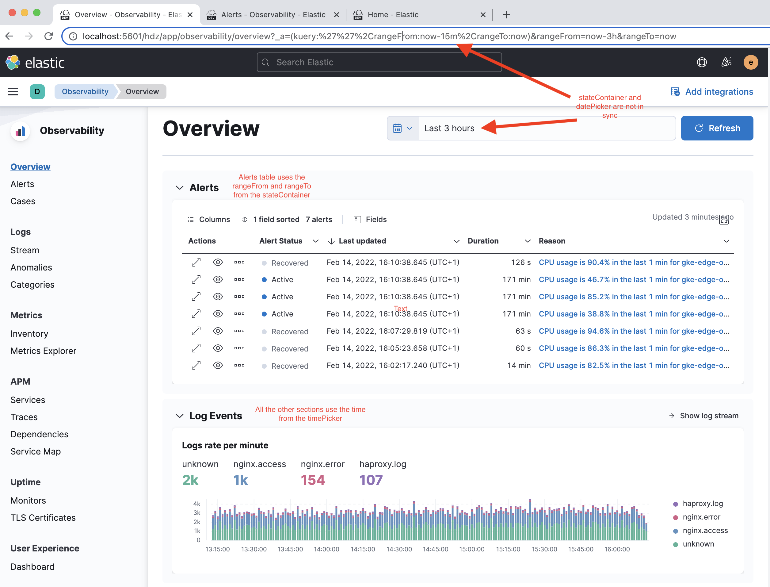 Above two changes were enough to bring existing alerts table in the Overview page.