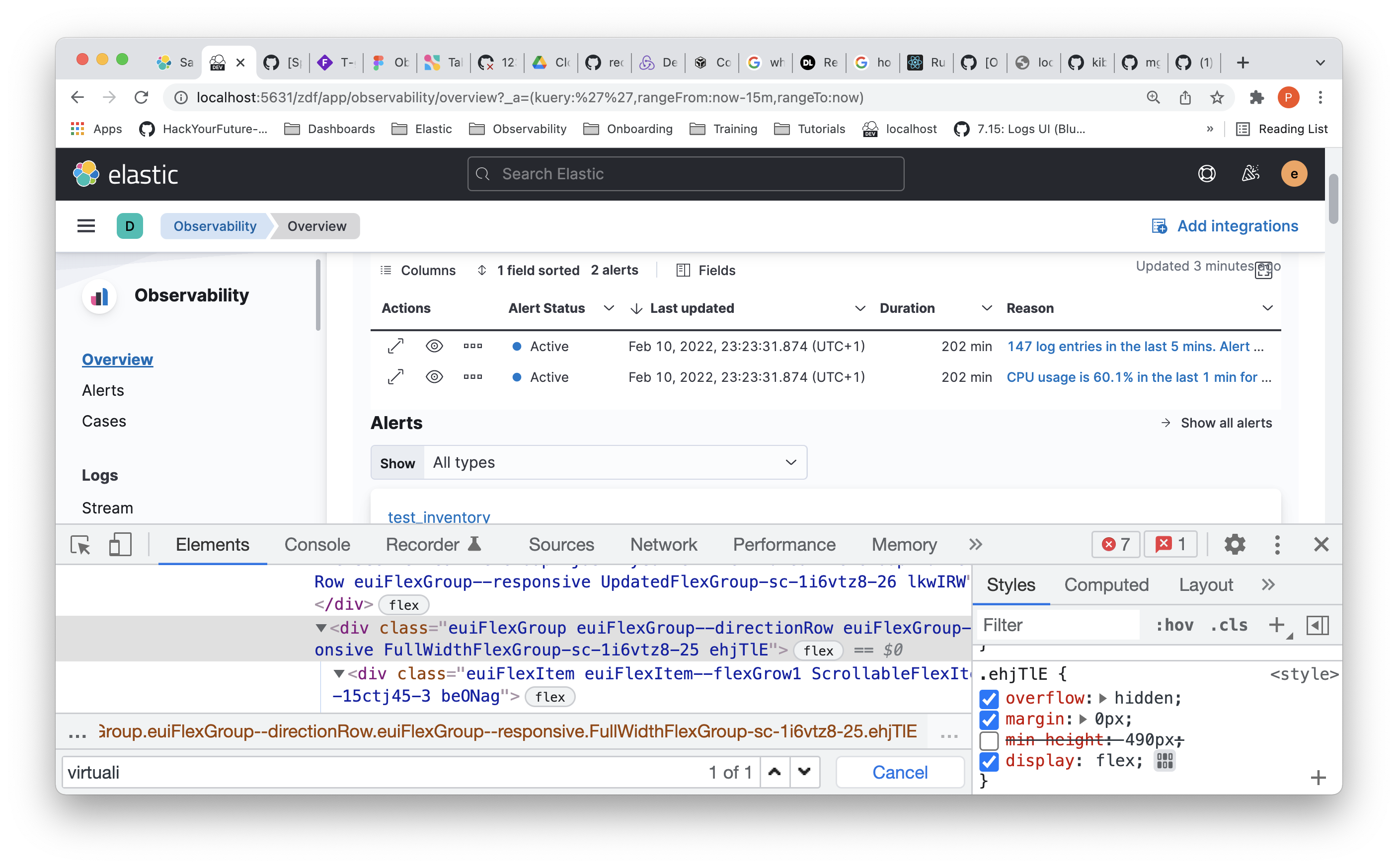 AlertsTableTGridis expecting asetRefetchprop. I didn't dive deeper into this, so for now I just passed an empty function.As you will see in the screenshots below, there are UI issues, since there is a min-height applied to the alerts table. We would need to see how we could parameterize it in the timelines plugin or playaround with css.