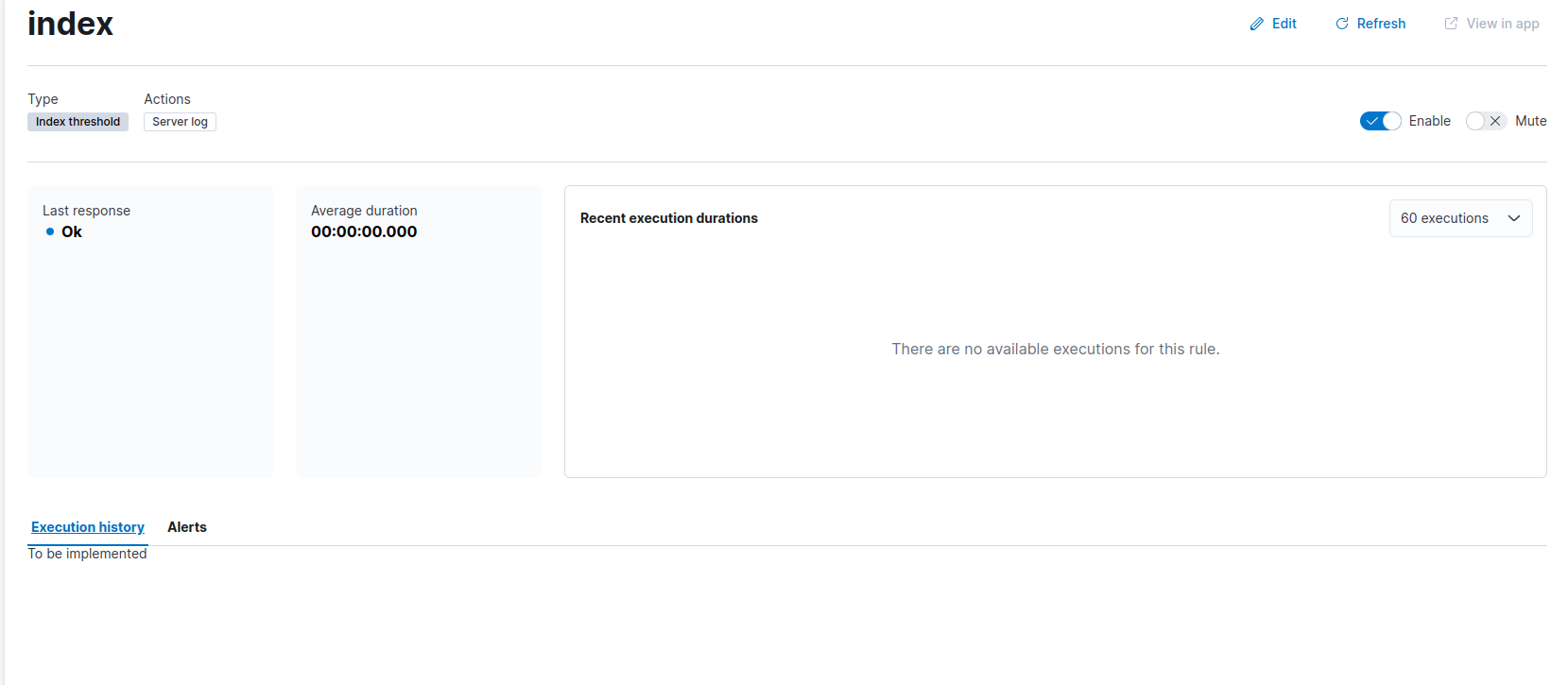 Change the rule summary page to include the execution history/log tab. The execution history is a stub and the this new tabbed content is hidden behind a feature flag (