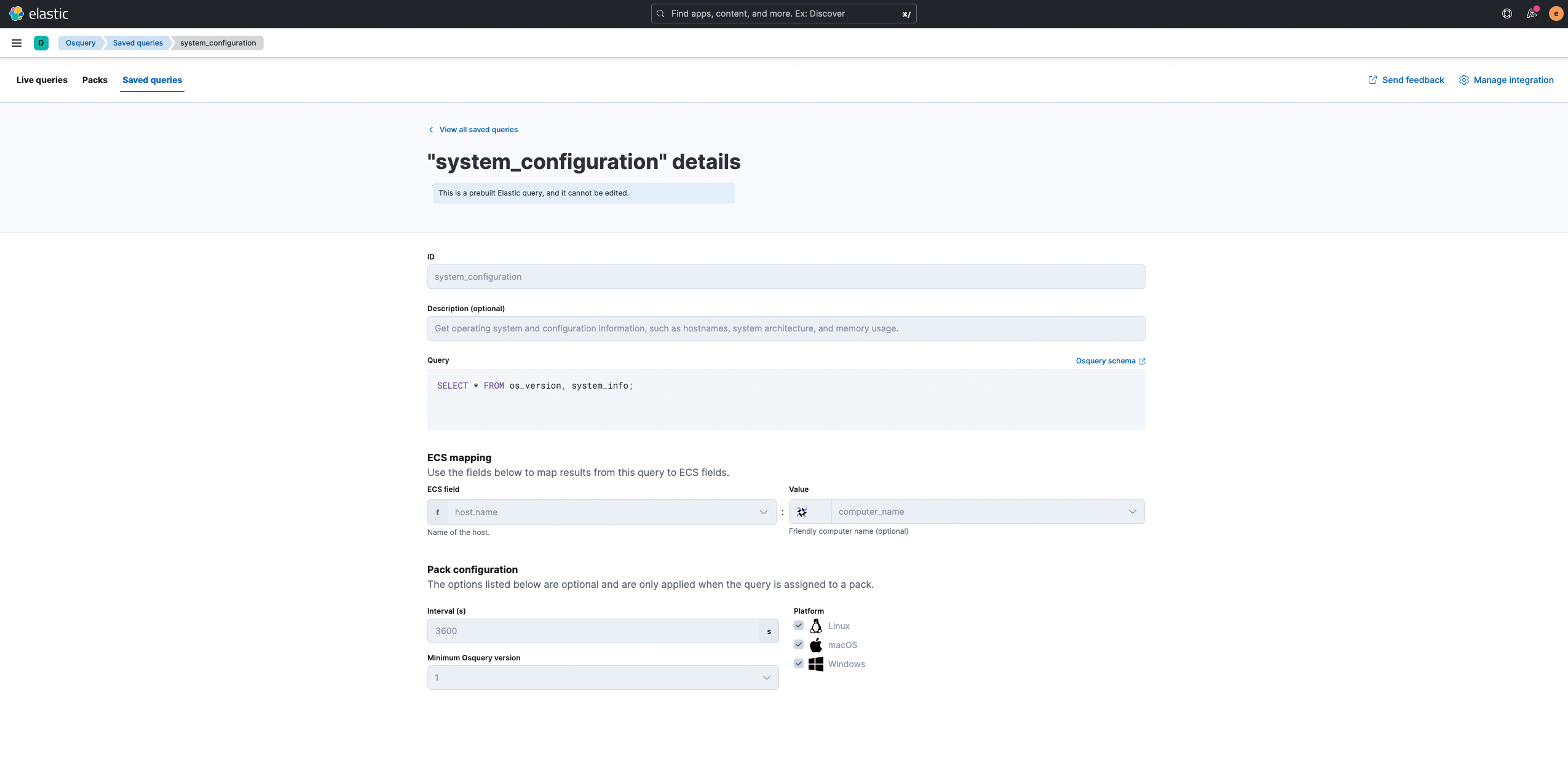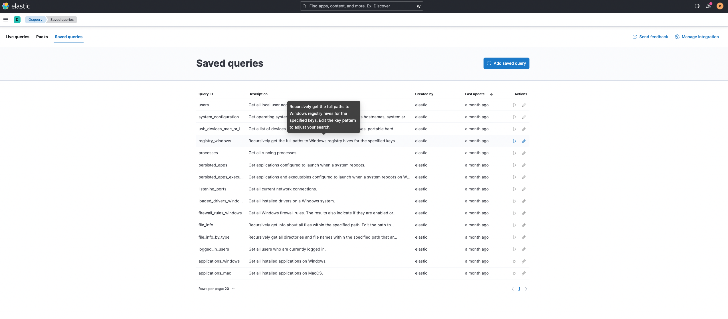 Added a list of predefined Saved queries when adding/updating Osquery Manager integration.