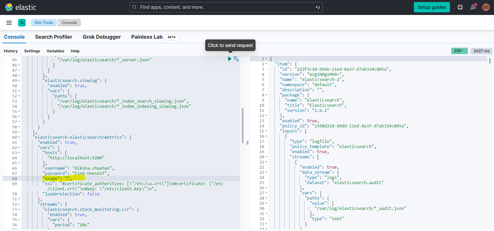 Scopeadvanced option in the Elasticsearch metrics settings (free text field):After