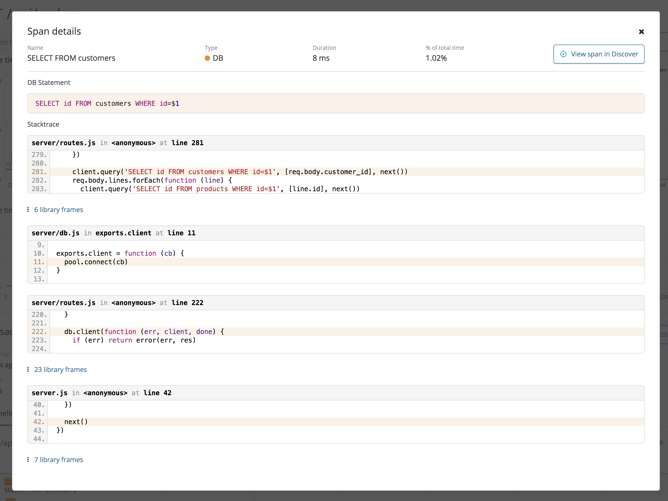 Adding titles for DB statement and stacktrace on the Span details modal.