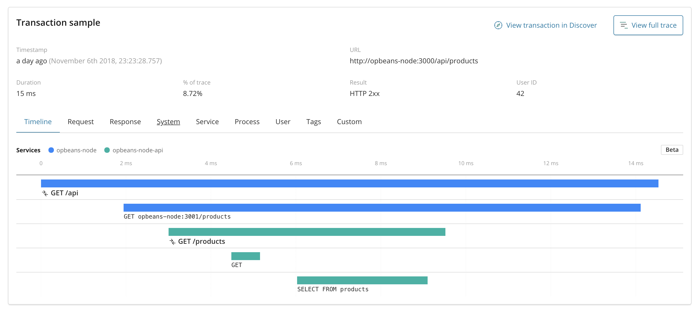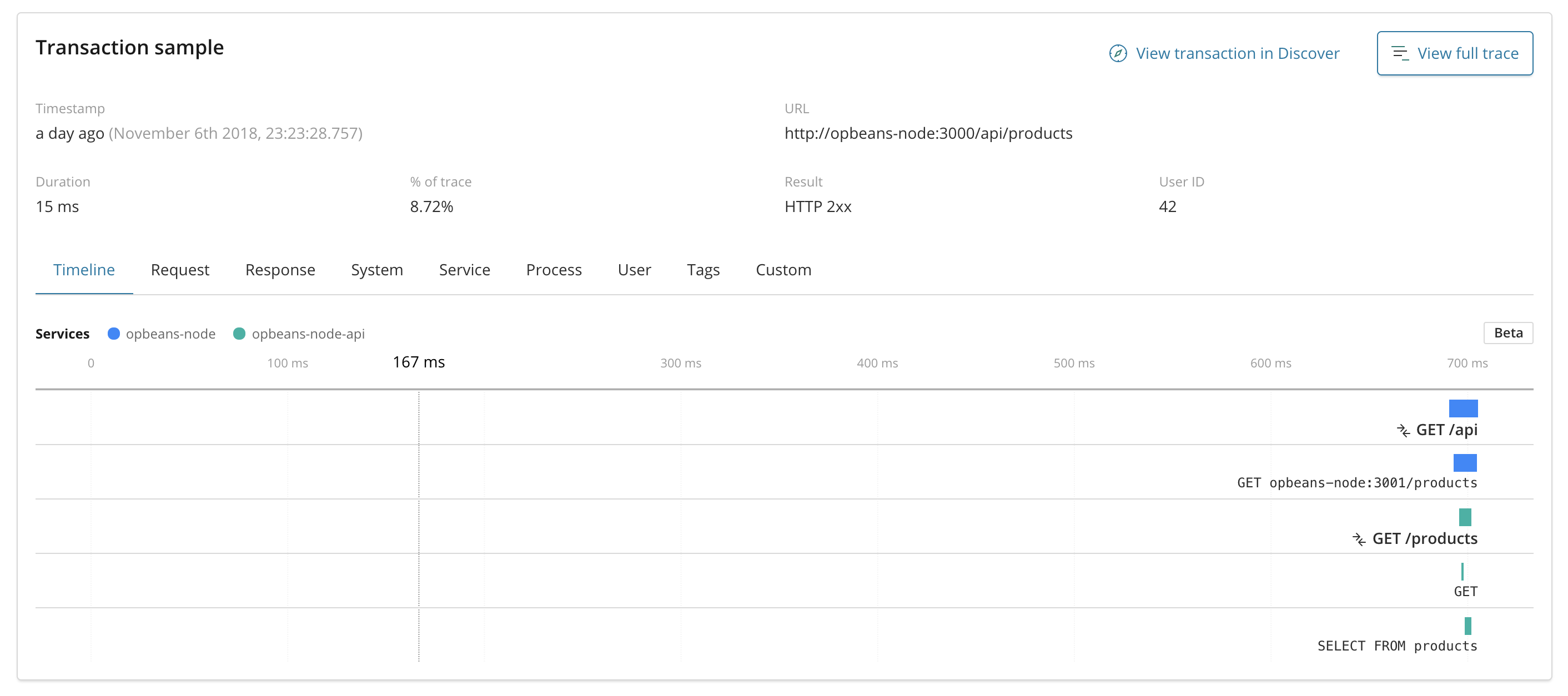 https://<host>/app/apm#/opbeans-node/transactions/request/GET~20~2Fapi?traceId=d77e740fd2b13da36c404527b3183394&transactionId=3024ab15d1979efe&_g=(refreshInterval:(pause:!t,value:0),time:(from:'2018-10-31T22:54:58.897Z',mode:absolute,to:'2018-11-07T22:54:58.898Z'))Closes #25286