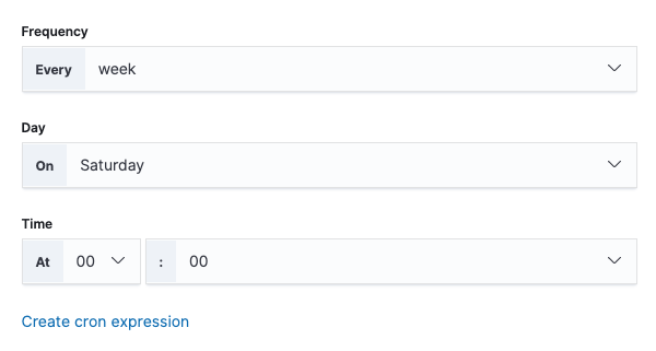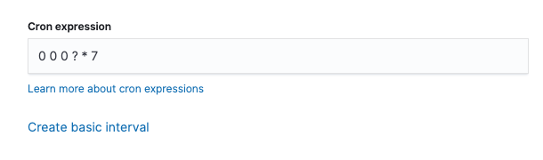 In terms of prior art, in the Rollup Job Wizard we use "Create cron expression" and "Create basic interval" to switch between two UIs for creating what eventually becomes a cron expression, though I'm not convinced "Create" is the right verb to use here. I think I would prefer "Use".