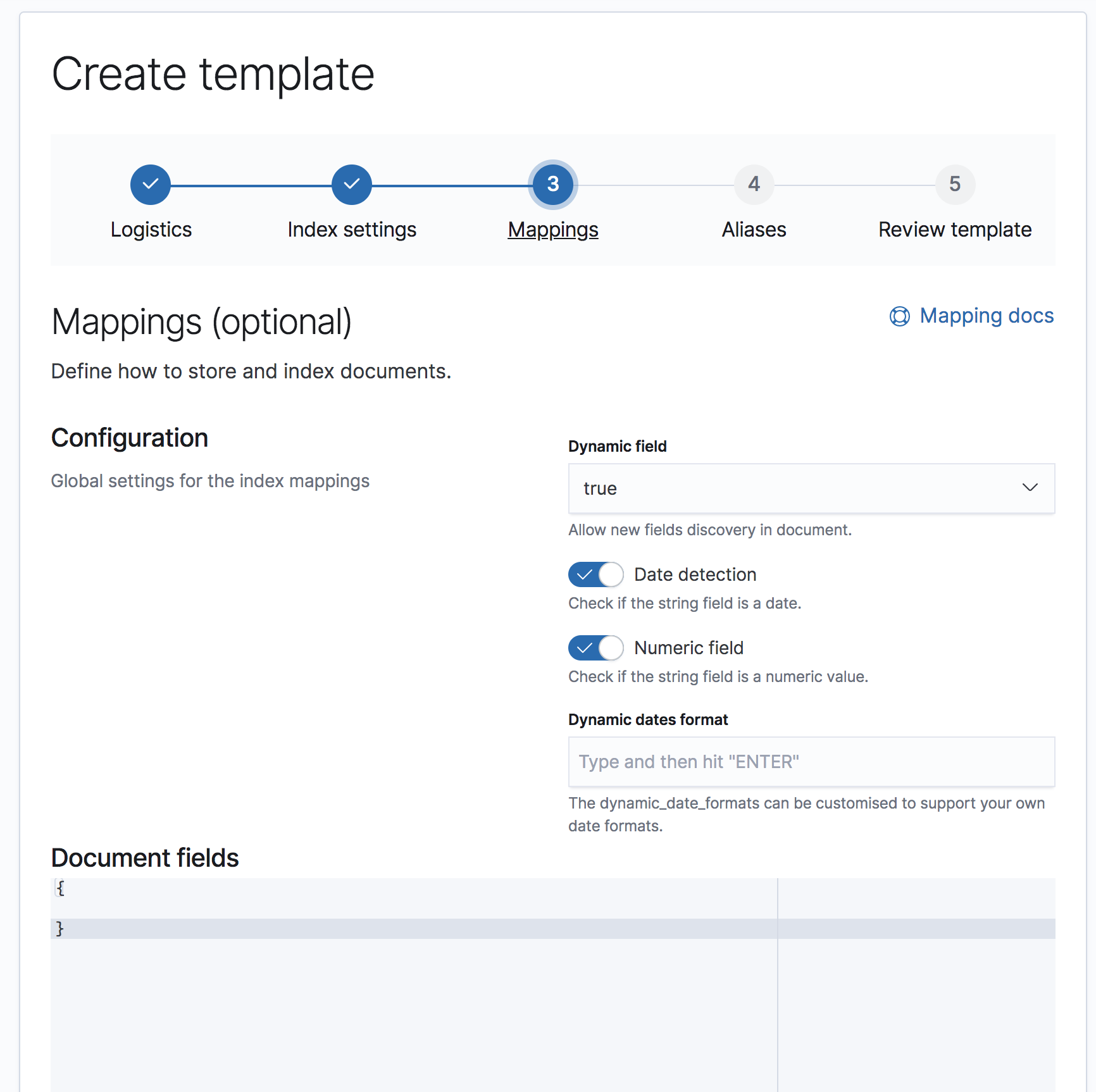 This PR integrates the mappings editor inside Template UI and adds an initial Json editor component.