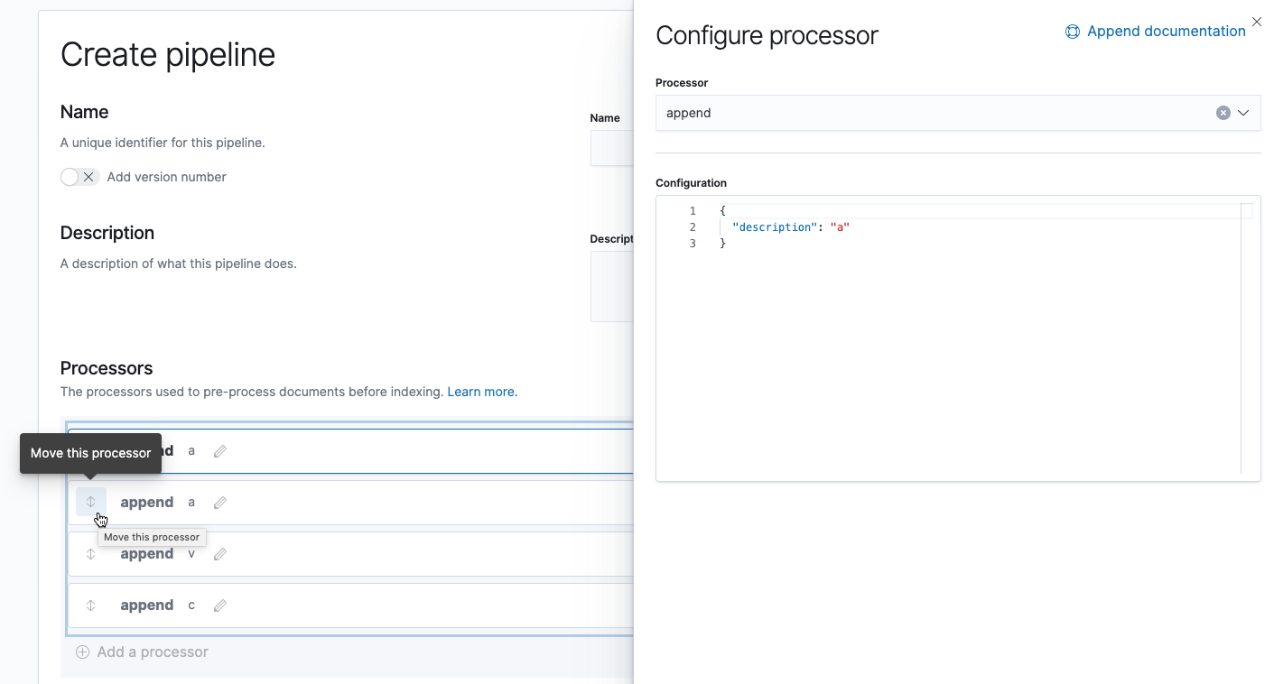 When the processor panel is open, actions on each processor appear disabled but it's still possible to click the "Move" button, which closes the processor panel. It's not obvious if doing so will cancel the save the user's input in the processor panel, which is a poor UX. I suggest disabling the move button when the processor panel is open, the same as the other actions.