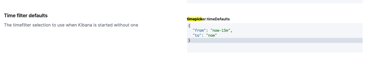 timePicker.timeDefaultssetting under Advanced Settings. This defaults tonow - 15m, and as such the default for the logs pages becomesnow - 15m, unless the user has set something else.(I have also kept our original defaults in an