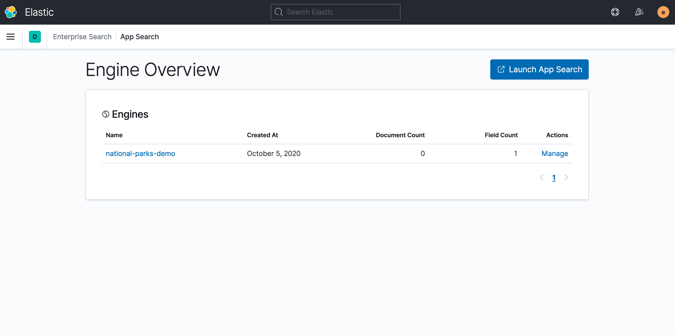 - Since our other top level pages (settings, credentials, role mappings) aren't yet ready, we'll stick to the same UI for 7.9, only showing the Engines Overview to users