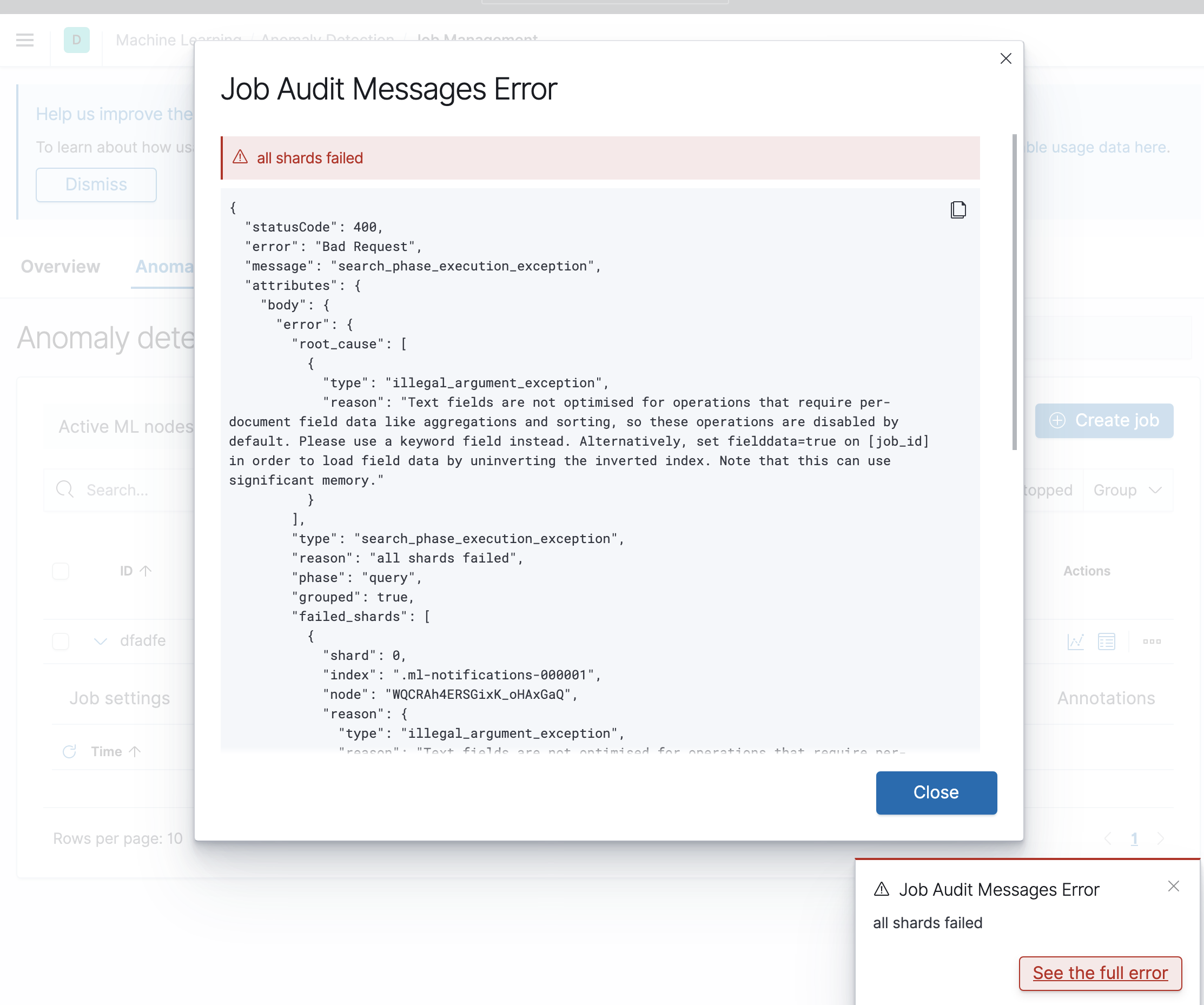 Also if possible can we show the same sort of error toast for the data frame analytics jobs list? The list is displaying ok if that index mapping is incorrect, but the error is only shown in the browser console. Would be nice to show that same error toast for the DFA page too. Note that job details section is also shown in the DFA results page.