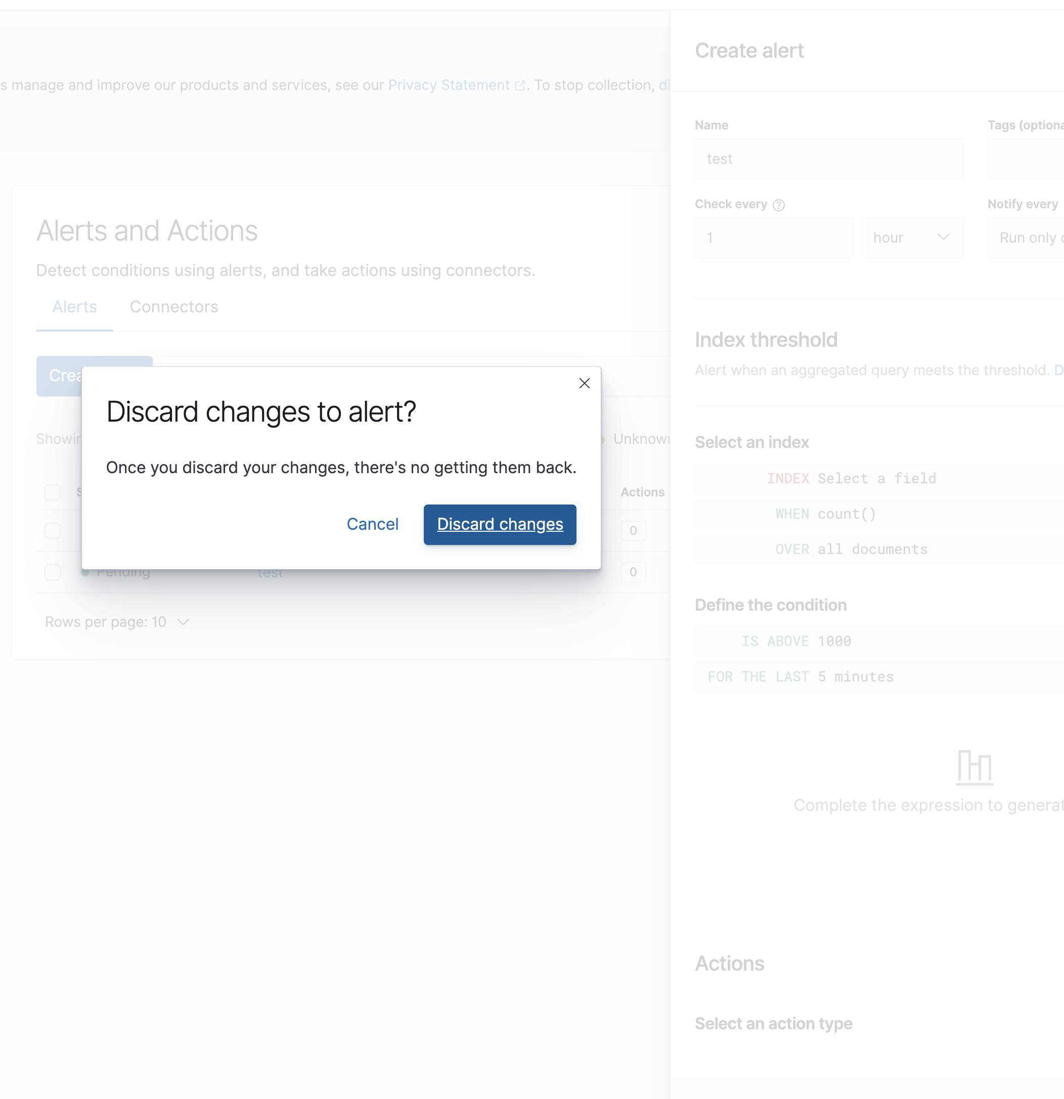 In Alert Add/Edit flyouts, added check for changes when flyout is closed without saving and showing confirmation modal if user has made changes to the alert form.