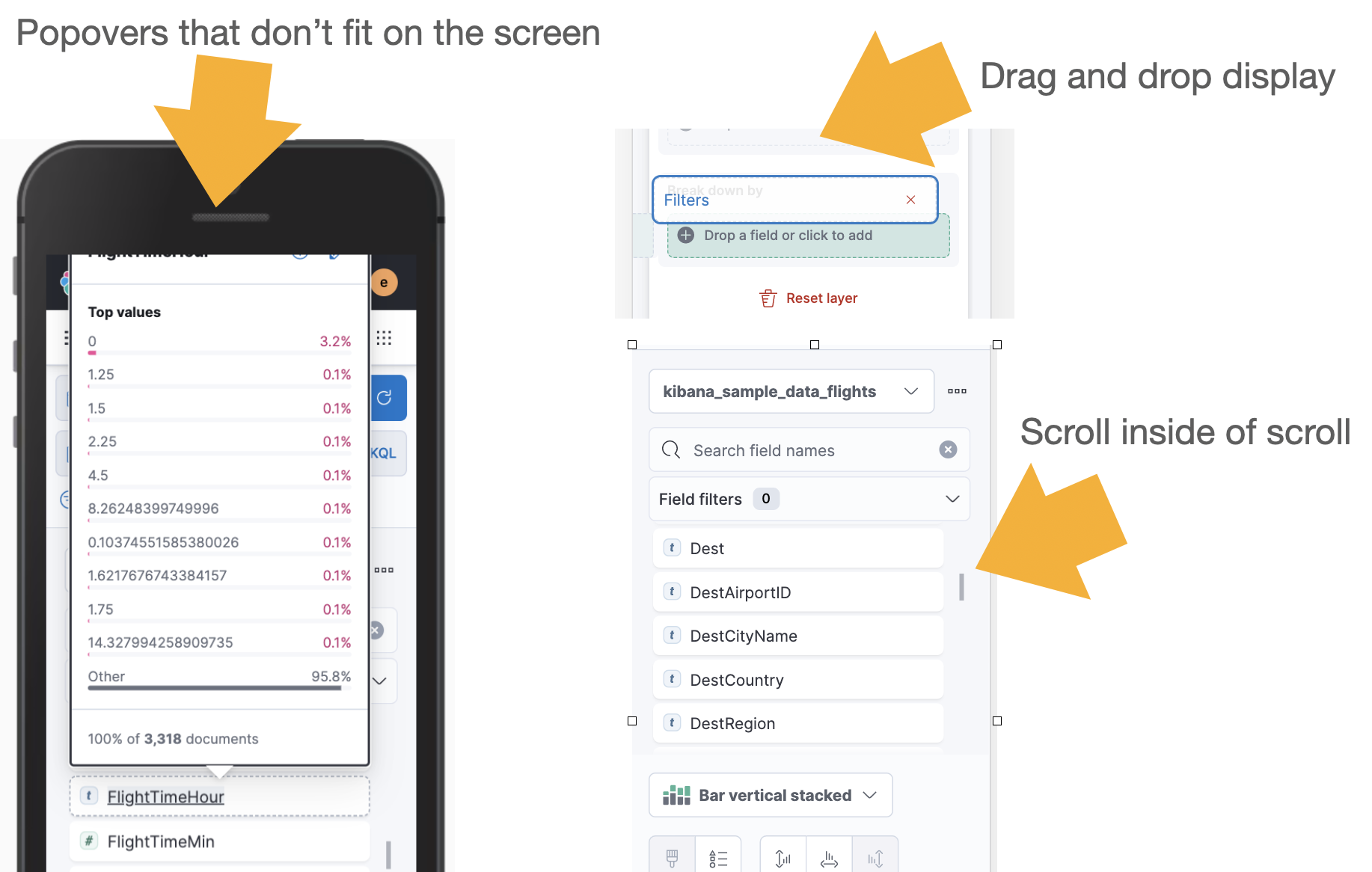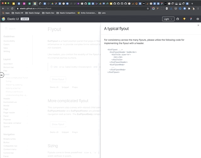 If possible, I think it would be nice to treat the configuration flyout as a fully overlaid modal experience for, just as the default EUI flyouts currently do (see GIF below). When opened, the configuration flyout overlays the entire experience and focuses the user's attention only on the contents of the flyout. After the user makes their changes, they may close the flyout in order to once again see the content it was covering. Would that be possible? That said, let me know if we want to begin a formal design effort for a fully responsive version of the Lens UI and I can work with the team on how to prioritize. |
