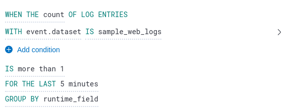 alerts with condition and group runtime fields fire