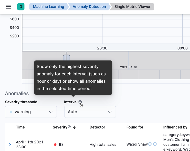 This PR adds a tooltip for the "Interval" selector in the Single Metric Viewer.