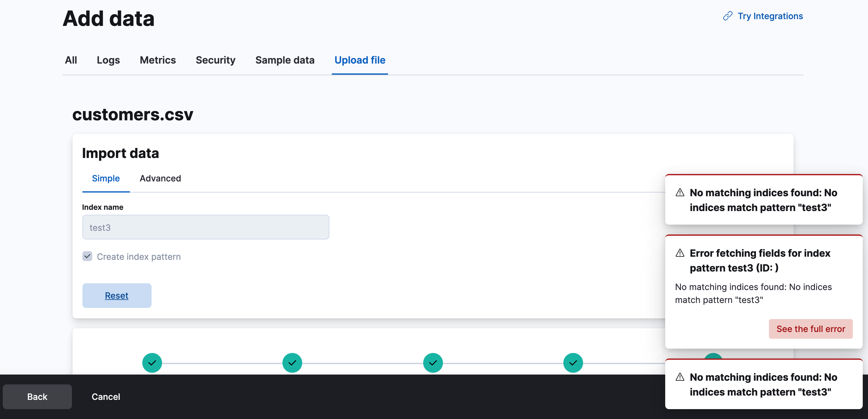 readindex privilege, without which the following errors occur:Preview