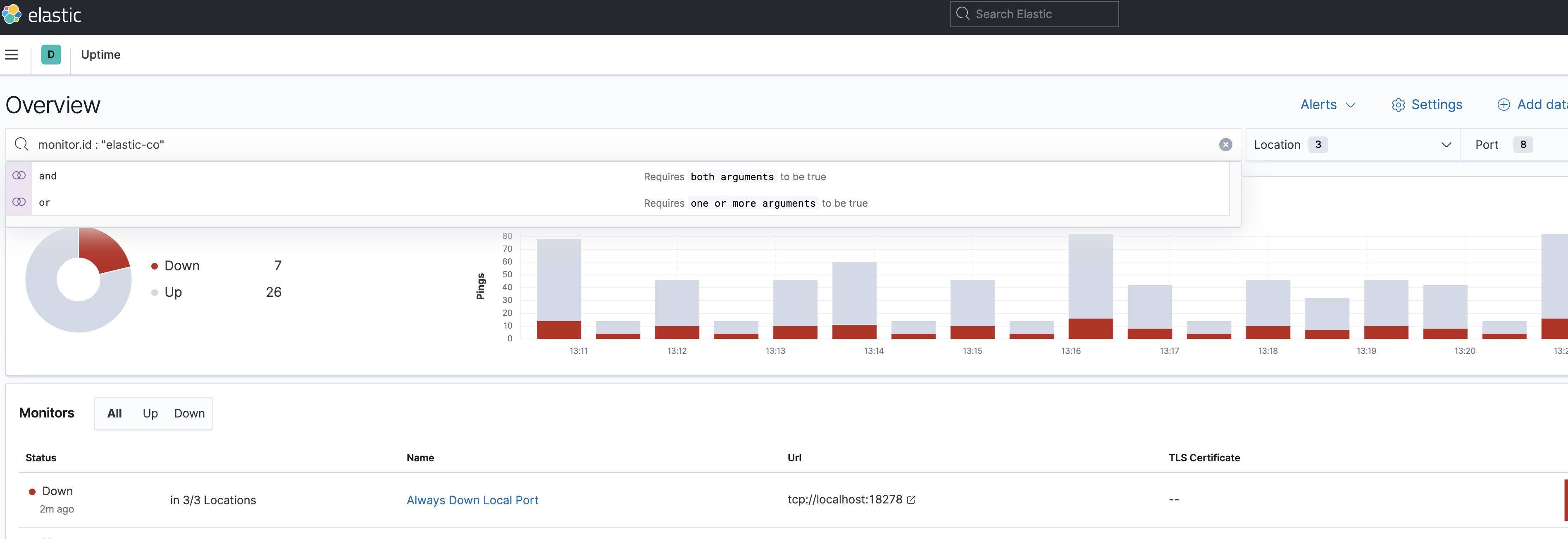 Uptime kuery bar use kql to search for monitors, although this is very powerful, it allows configurable syntax, but it has overhead for normal users, it's useful for advance users, but you need to have know-how of how elastic search, kql and heartbeat index works.