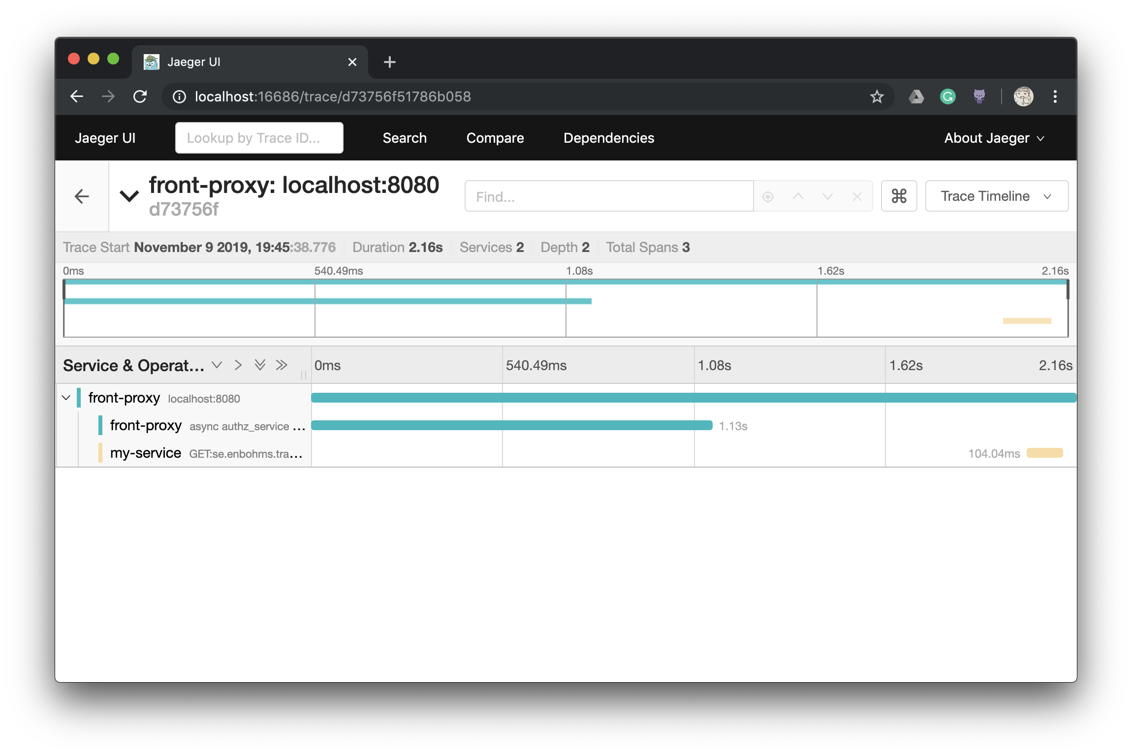 Tried with your modified image but unfortunately still same behaviour, i.e. no B3-headers propagated to the external auth service nor is the whole trace visible in Jeager UI. Do you have a screenshot you can share or logs where you can see the B3-headers in the auth.service?