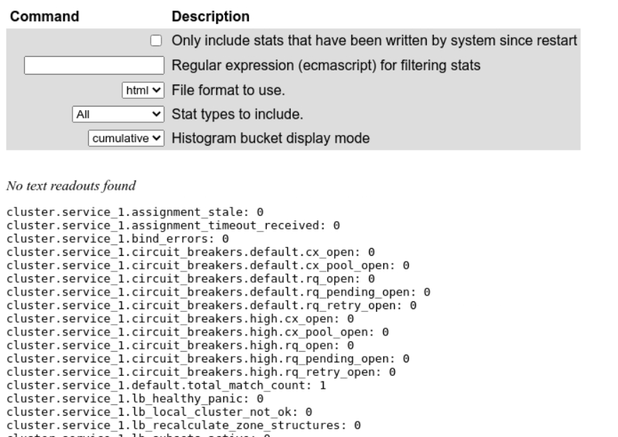 | type: Stat types to include.; One of All Counters Histograms Gauges TextReadouts | ||