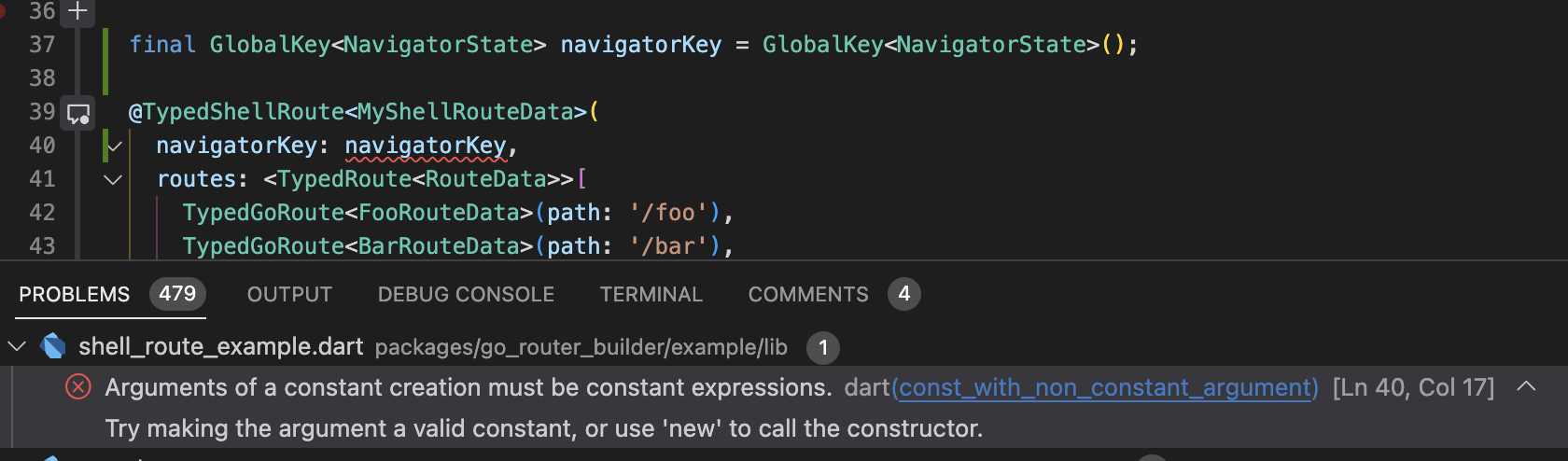 I'm good with that and it's not too far from the initial implementation. EDIT: actually the problem is that if the keys are non-static getters, I don't know how to invoke the getter or get the name of the variable returned by it in the generated code. For example, in this code: final GlobalKey<NavigatorState> goRouteKey = GlobalKey<NavigatorState>();