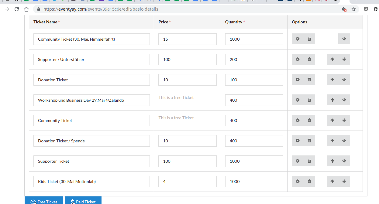 The editing of events is still buggy. Error messages appear and suddenly the error is gone. A common error when changing the date/time is that other fields are changed suddenly as well. Also the event sometimes cannot be saved. A message appears something like "start date should be before ticket sale ends". The dates are set in a logic way, but errors still stay. Another issue is that deleted tickets suddenly appear again and at reload disappear.