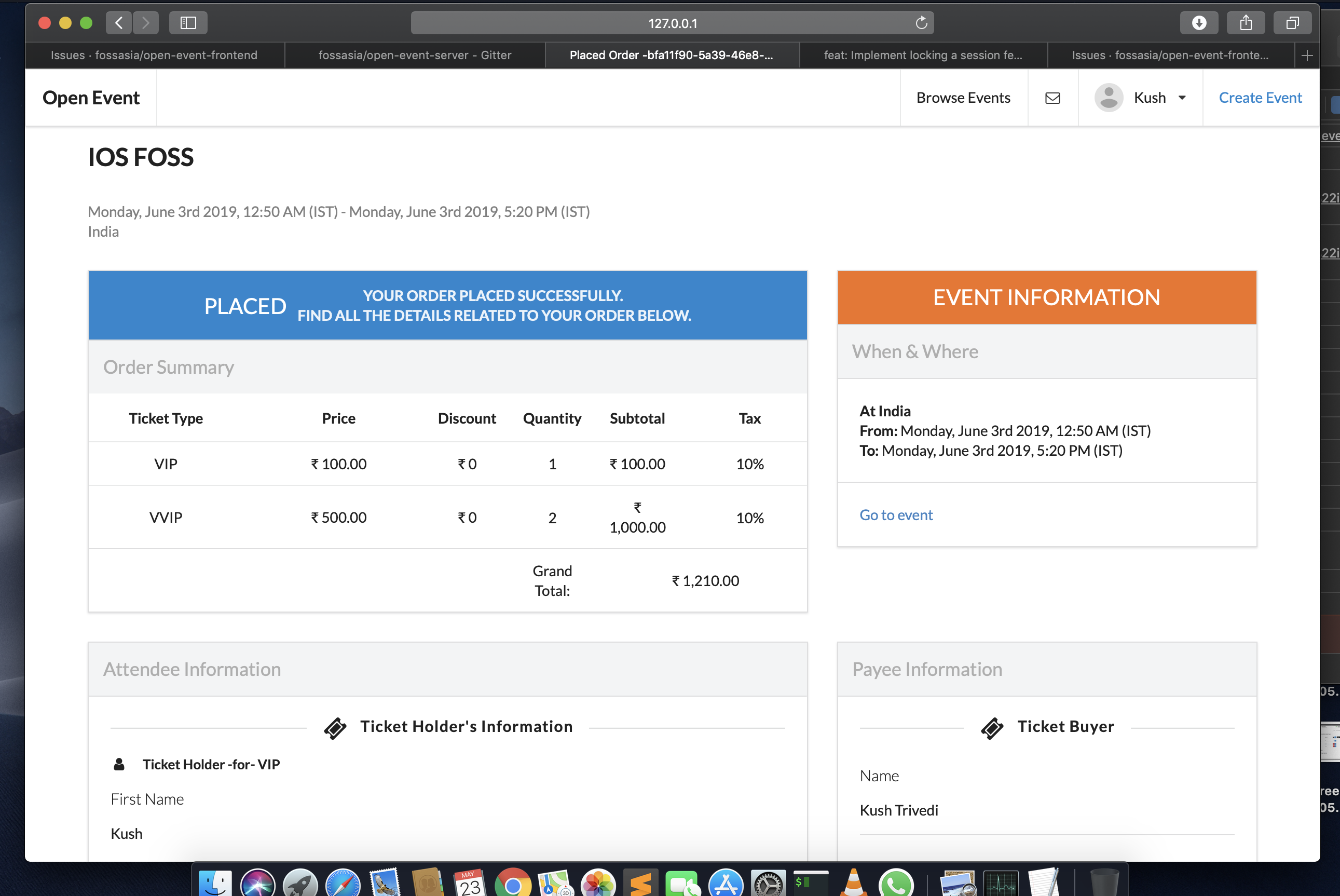 There is scope for several improvements in Tax Modal generated at `Order Checkout` -: * [x] Include `Ticket Price` in row of every ticket * [x] For a `Free Ticket` adding tax does not make any sense , Remove the `Column for Free Ticket`. * [x] Fix the alignment issue in `Order Checkout` * [x] Remove the `Discount Column` if no `Discount Code` is applied * [ ] Show `Subtotal` inclusive of `Individual Ticket with Tax Rate` * [x] Columns of `Payment Dialogue` are wrongly placed , Use standard order as in `Eventbrite` or any E-Commerce Site. #### Screenshot -: <img width="691" alt="Screenshot 2019-05-23 at 4 19 45 PM" src="https://user-images.githubusercontent.com/44091822/58247680-da62d080-7d77-11e9-8fa9-cafc63e162a9.png">