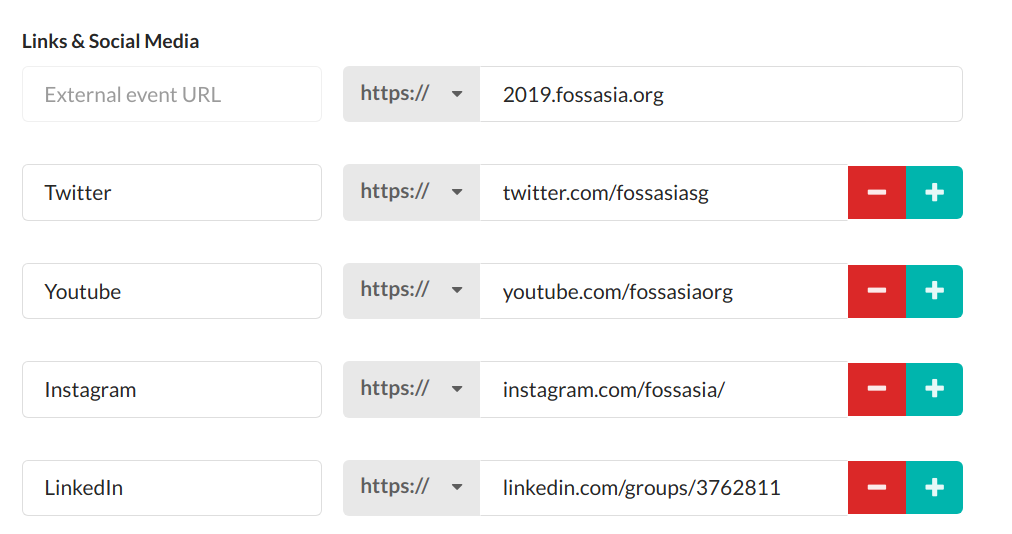 Currently the Form for social event links in the wizard step 1 requires the user to fill the name of a social media service.