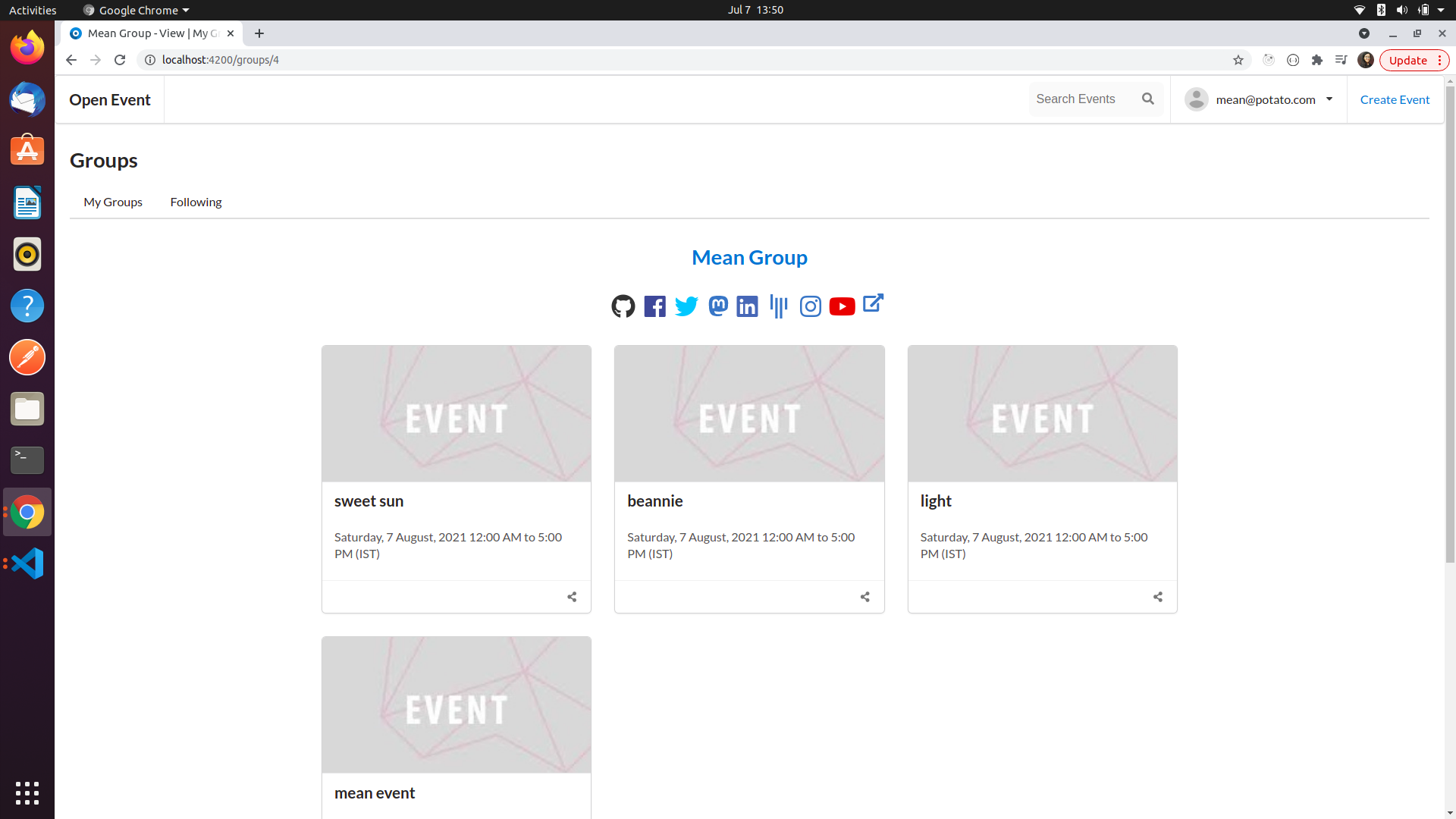 Please add a groups about option to groups and show this: 1. As a section (text) above the social icons.  2. Change the events listing to display the about text instead of the event listing and do not show a date here.