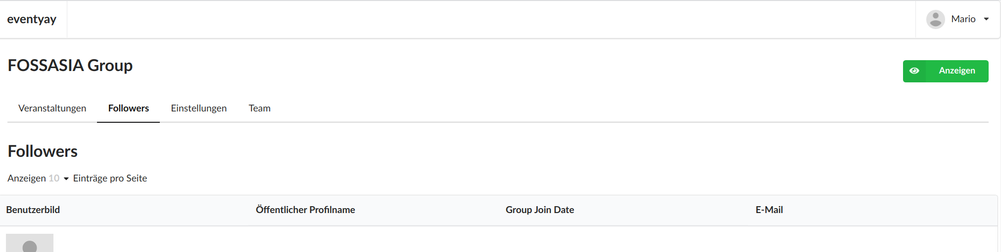 Please enable the user to search the followers table. Add a search box on the right above the table. Ensure the search uses the backend (instead of making a frontend search only).