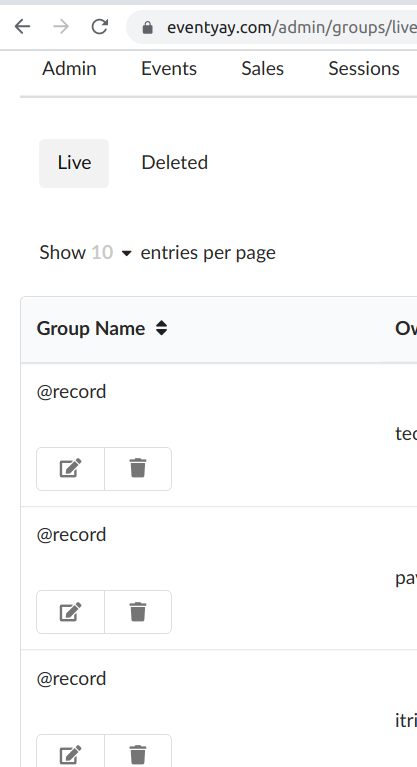 The table on the admin groups page does not display the name of groups. Please help to fix this.
