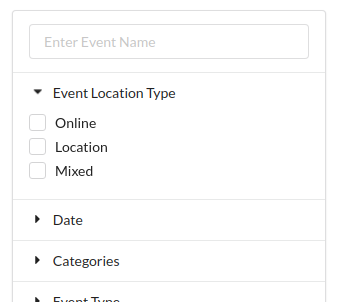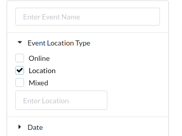 and Provide an option to choose between "Mixed Event", "Online", "Location based" and similar to areas like > Date