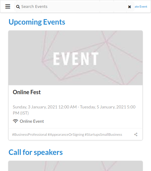 Move the search feature to the top bar and substitute "Browse Events" with "Search Events"