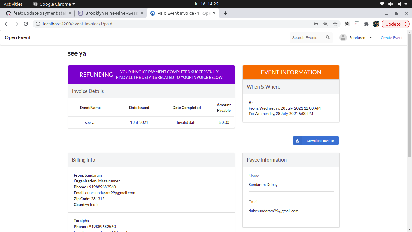- Add status info on invoice page. It should not show "Paid" if the user has not paid, e.g. it is possible that the admin of the systems sets a status to resolved for an event that has not paid anything.