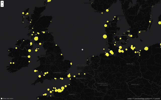 attribute, decodes these, and displays them as coloured circles on the map using Leaflet. It also tries to take the seamark:light:range