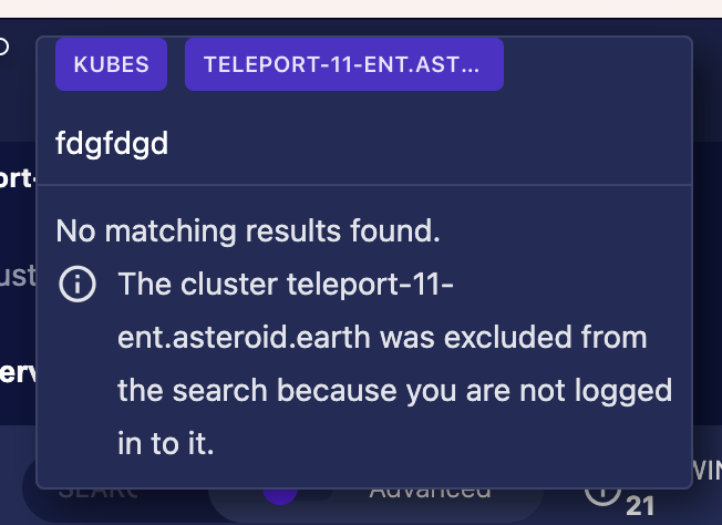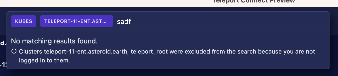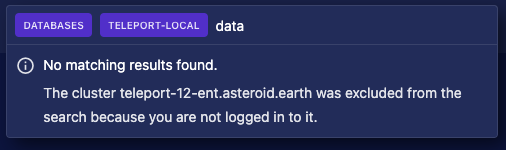 | return `The cluster ${excludedClustersString} was excluded from the search because you are not logged in to it.`; |