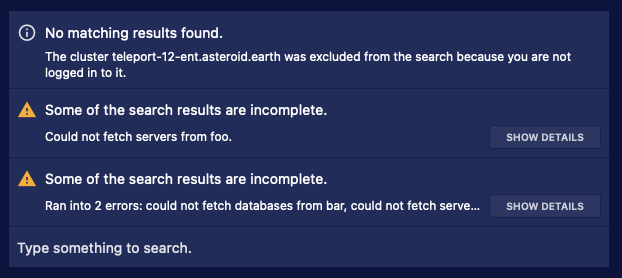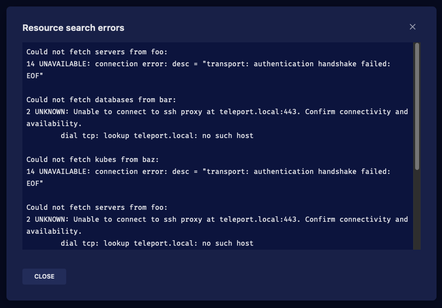 Promise.allSettledand then return a flattened array of results across different clusters. Another important piece is the customResourceSearchError. If a resource search request fails, this is the error that is returned. It contains extra fields, one which points at the relevant cluster and one which describes what kind of resource we were trying to fetch.Thanks to this, later in the UI we can extract those errors and tell the user what exactly went wrong.