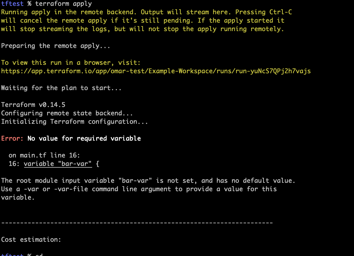 terraform apply, the "Cost Estimation" output appears, even though it shouldn't.See Screenshot