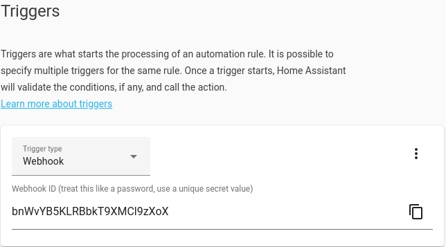@alderete I've sent a PR for randomizing the webhook_id by default. home-assistant/frontend#11568 Could you take a look, and update the docs if you think there is anything needed for that? The copy button on the right-side copies the URL for the webhook to the clipboard ( Thanks for volunteering to update the docs! |