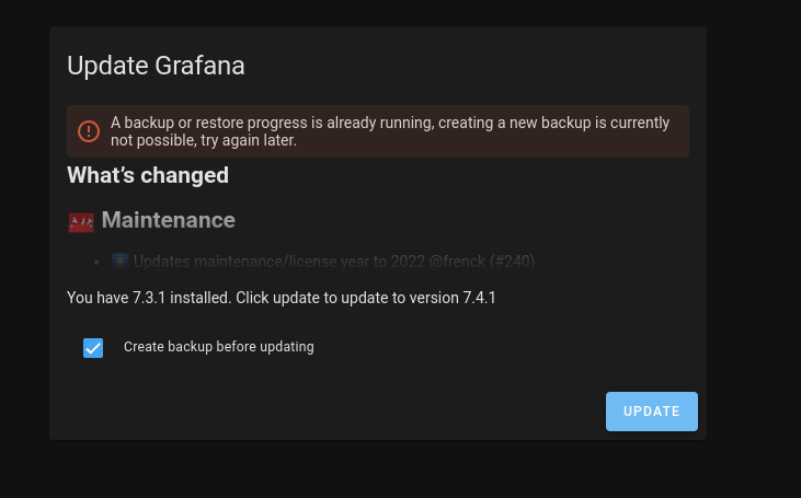 Before the "update" button was "disabled" without any reason. As I have been told, conditionally disabling buttons is not good, so this PR removes that logic and makes the button always clickable, but now adds an error if backup/restore is already running.
