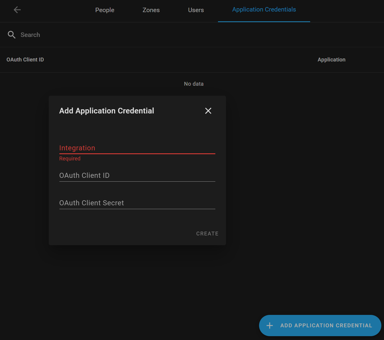Add a configuration panel for Application Credentials which allow users to configure OAuth Client ID and OAuth Client