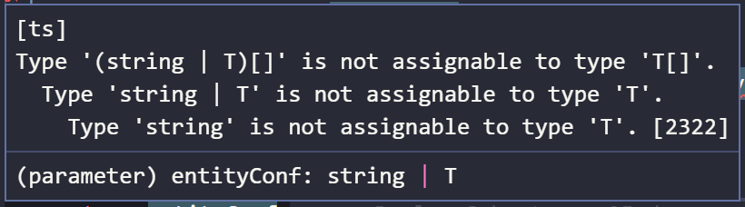 This is not correct. The output is EntityConfig[], the input can also be a string (as tested for on line 19) so should be Array<EntityConfig | string>. Also please mark the return type