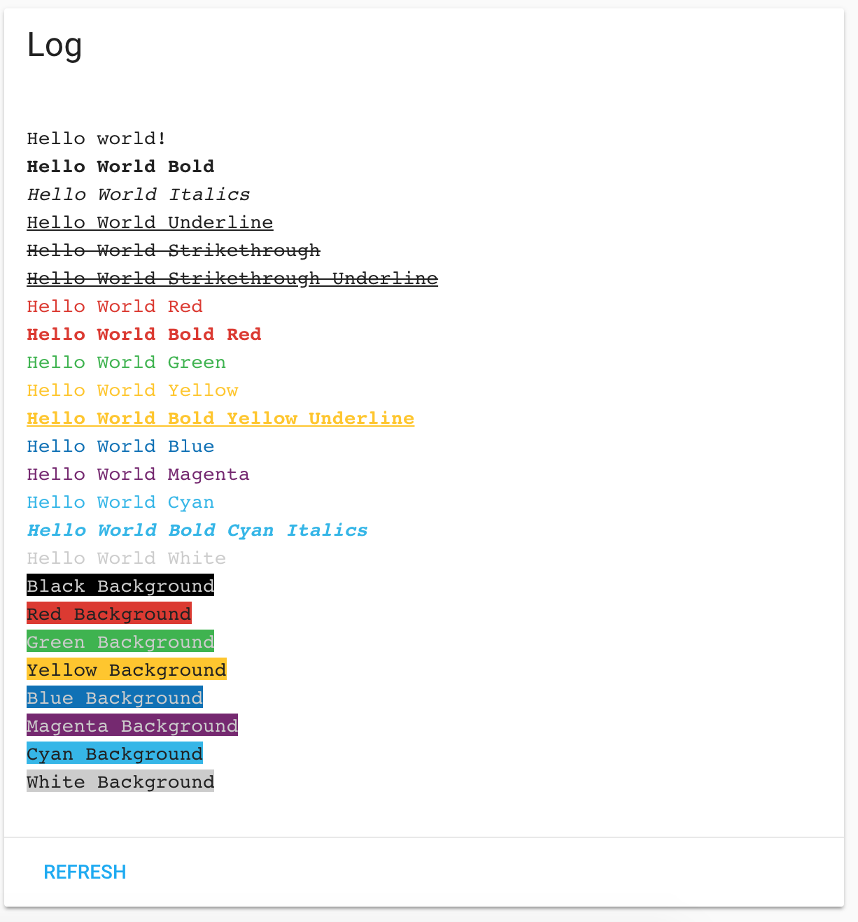 For readability, you could make the background of the log screen dark, as most of those colors were designed for a dark background? You should create a new file export function createHtml(text) {