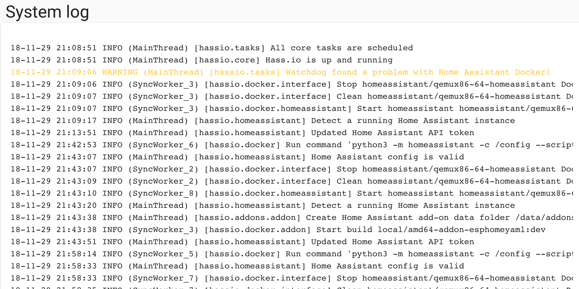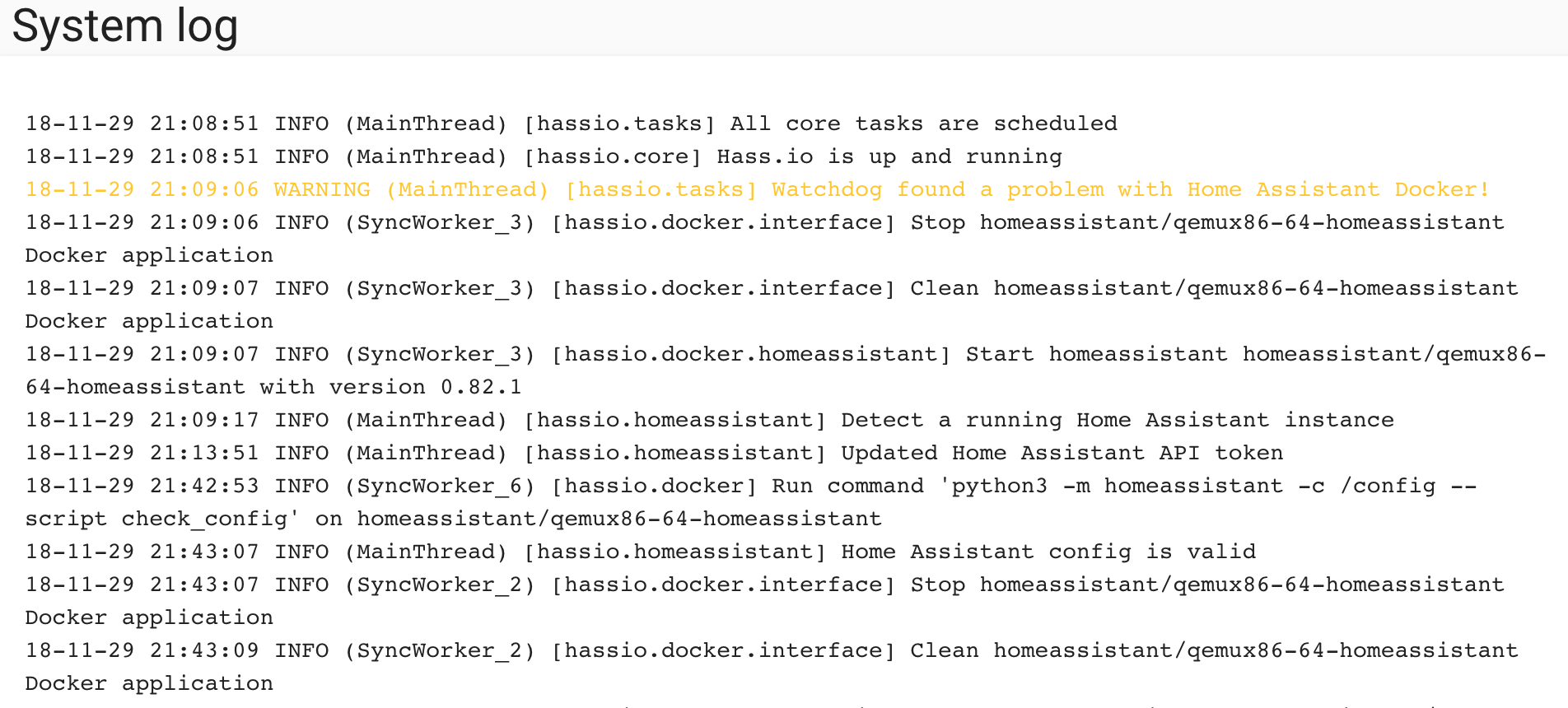 }In the application where this code is taken from, this really became a performance problem with longer logs (I used innerHTML, but the speed would be similar). Especially once the Hass.io logs are streamed using websockets re-computing the entire log every time a new line appears would be quite inefficient IMHO.