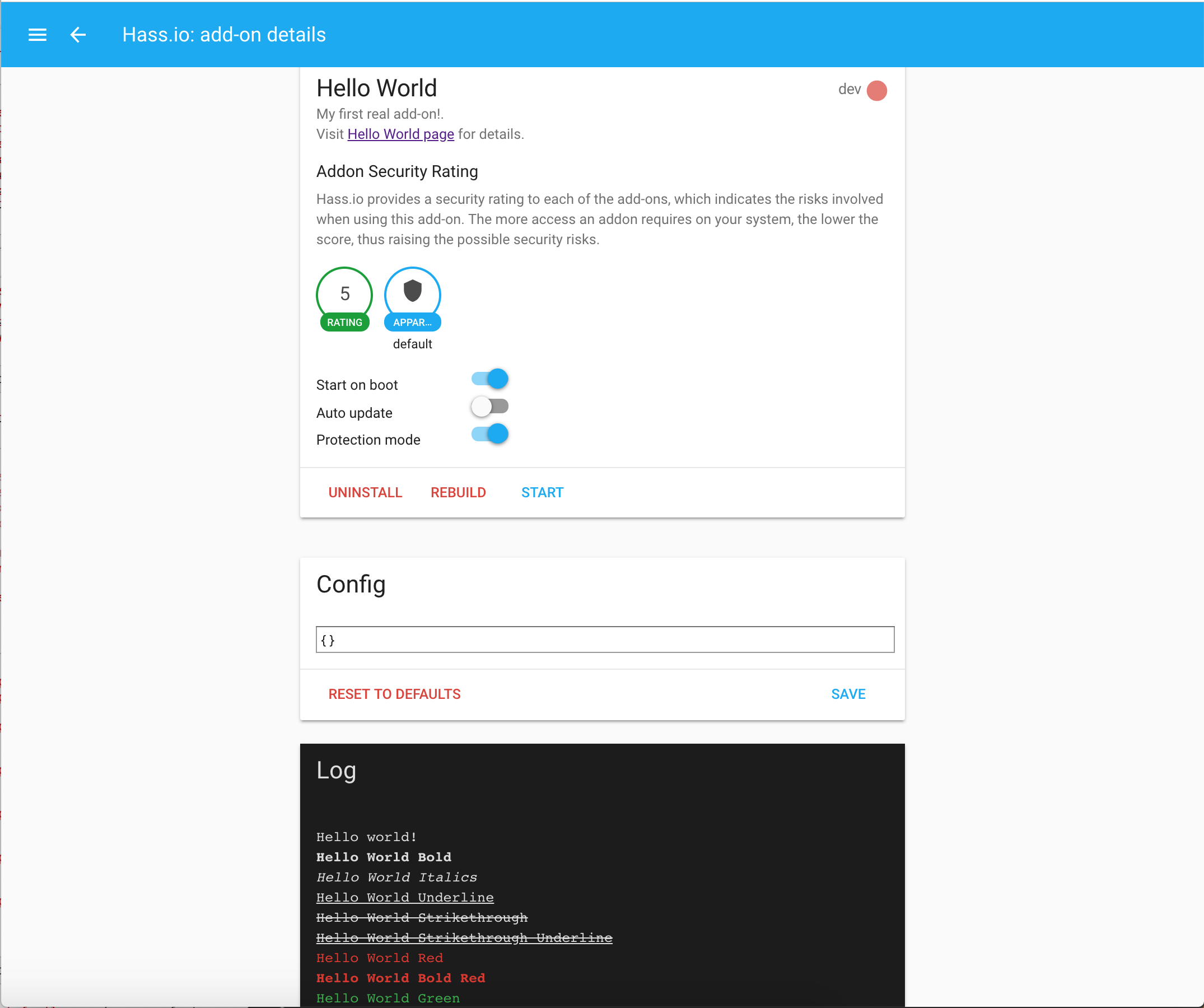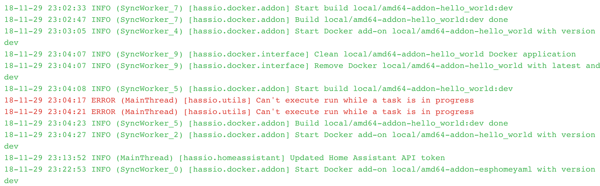 Show colors in Hass.io logs. Example: