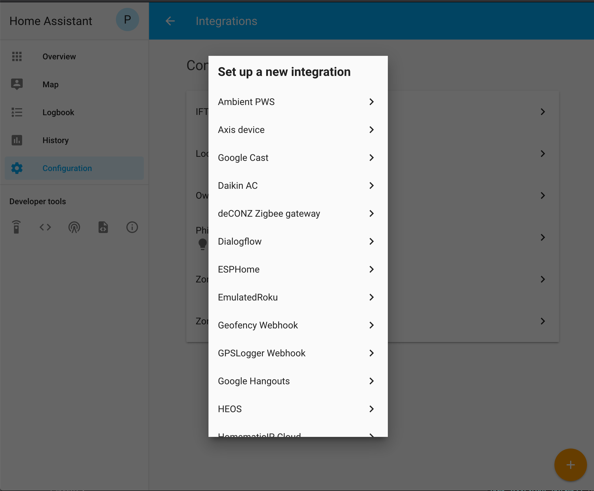 This moves the "pick new integration card" into the dialog as the first step.