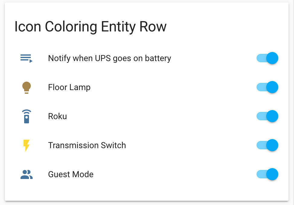 I suspect some will gripe about the entity row changes in the short term simply because they've been used to things working a certain way. Though I think most people will get over it quickly and realize coloring isn't necessary there. But might want to make a compromise and still always color lights though in entity rows? Not sure. |