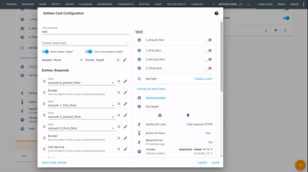 Entities Card: Add Header & Footer Editor#6751