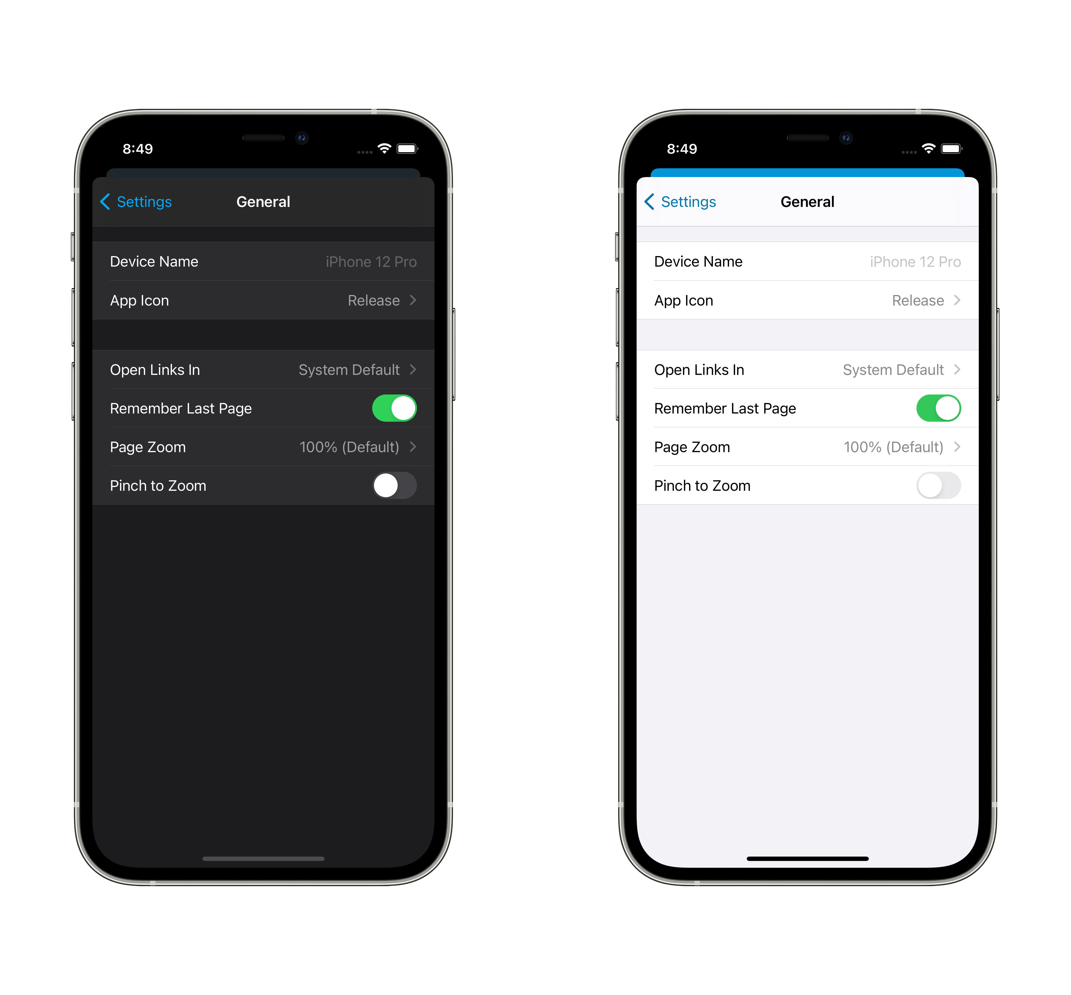 Refs home-assistant/frontend#8192. ## Summary When enabled, pinch to zoom is allowed in the frontend. When disabled, which is the default, it is not allowed. This does not respect what the frontend sends for the values of `minimum-scale`, `maximum-scale` and `user-scalable` and instead overrides them. ## Screenshots  ## Any other notes In home-assistant/frontend#7180, the frontend was changed to enable pinch to zoom in the app by removing the `user-scalable` flag. Browsers ignore this flag, but our UI is meant to feel like an app, not like a webpage. The accessibility part of the argument doesn't mirror iOS accessibility: dynamic type is how the system behaves and it doesn't scale elements like navigation or tab bars. To achieve an iOS-like accessibility experience, we have a setting to adjust only the text size in the frontend. But we are not in total control over the contents of the users' dashboards or pages. There's layout and design choices that users may make which inherently don't work well on mobile without zooming on non-text elements, including other webapps. I believe this is a rare enough that disabled as a default is acceptable, but also common enough that the preference itself existing is worthwhile. This works in all versions of iOS that we support, iOS 12 and above.