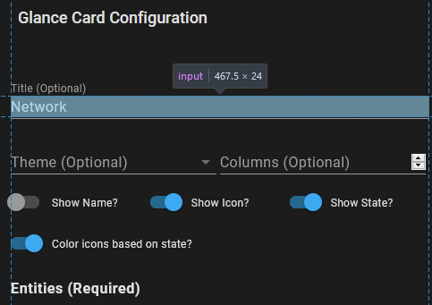 <ha-switch>was not properly aligned, see the before/after screenshots. I added 8px of padding, since the material guide says increments of 4px (source), although here 6px might suffice.There is one visual difference I can spot: The label next to the switch is now a bit farther away. That is because the following selector adds a 4px padding on its own. In other frontend areas where a